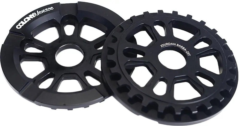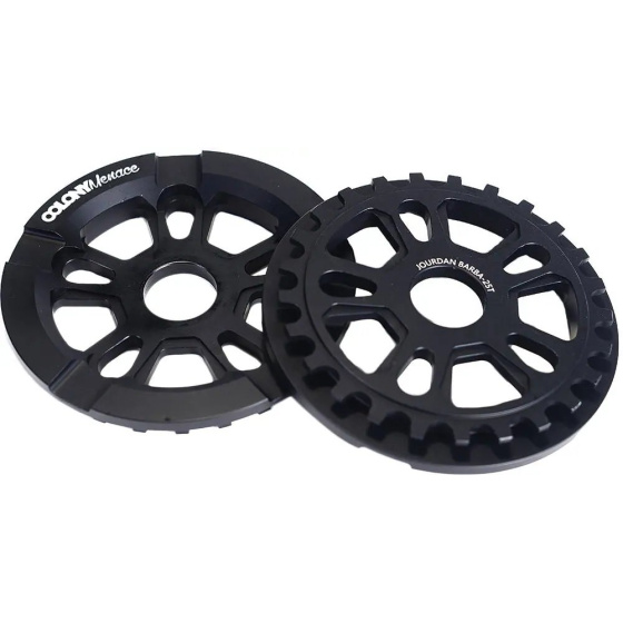 Colony Menace Guard to wysokowydajny konwerter rowerów freestyle BMX. Dostępne w wersjach 25T i 28T. Jeśli chcesz osiągać wyższe prędkości maksymalne, wybierz większą tarczę z większą liczbą zębów. Jeśli jednak zależy Ci na łatwiejszym pedałowaniu i lepszym przyspieszeniu, powinieneś wybrać mniejszą tarczę. Ta przerzutka Colony została zaprojektowana z centralnym otworem 24 mm i otworem na śrubę, ale dzięki dołączonym adapterom nadaje się również do montażu 19 mm i 22 mm.
