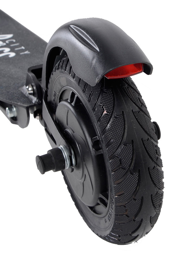 Obie naprawione opony zawsze zabiorą Cię do miejsca docelowego bez ryzyka uszkodzenia, a dzięki rozmiarowi 8 cali bezpiecznie pokonają nawet niewielkie nierówności. Przednie i tylne zawieszenie pomaga tłumić nieprzyjemne wibracje. Koła są chronione przez błotniki.