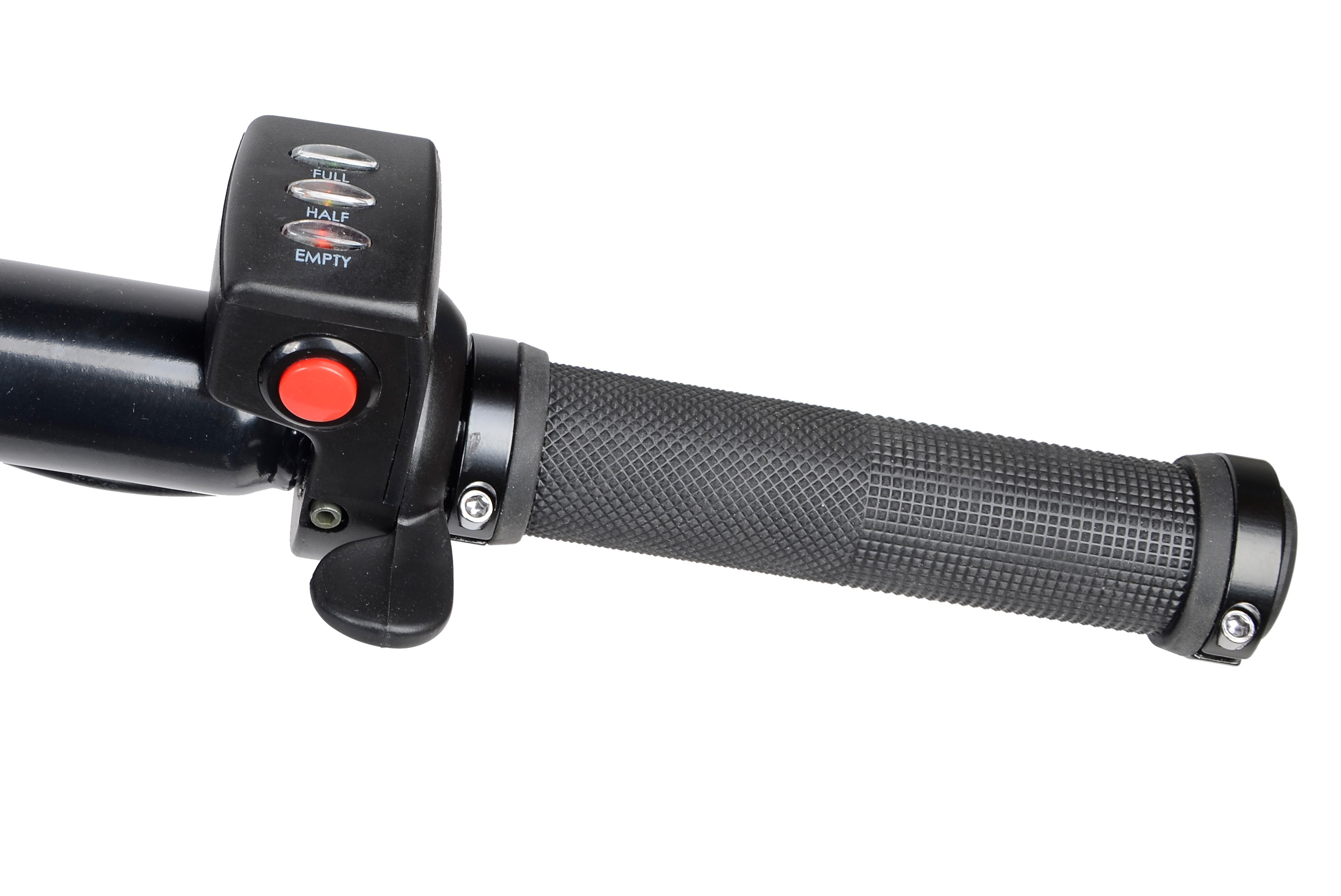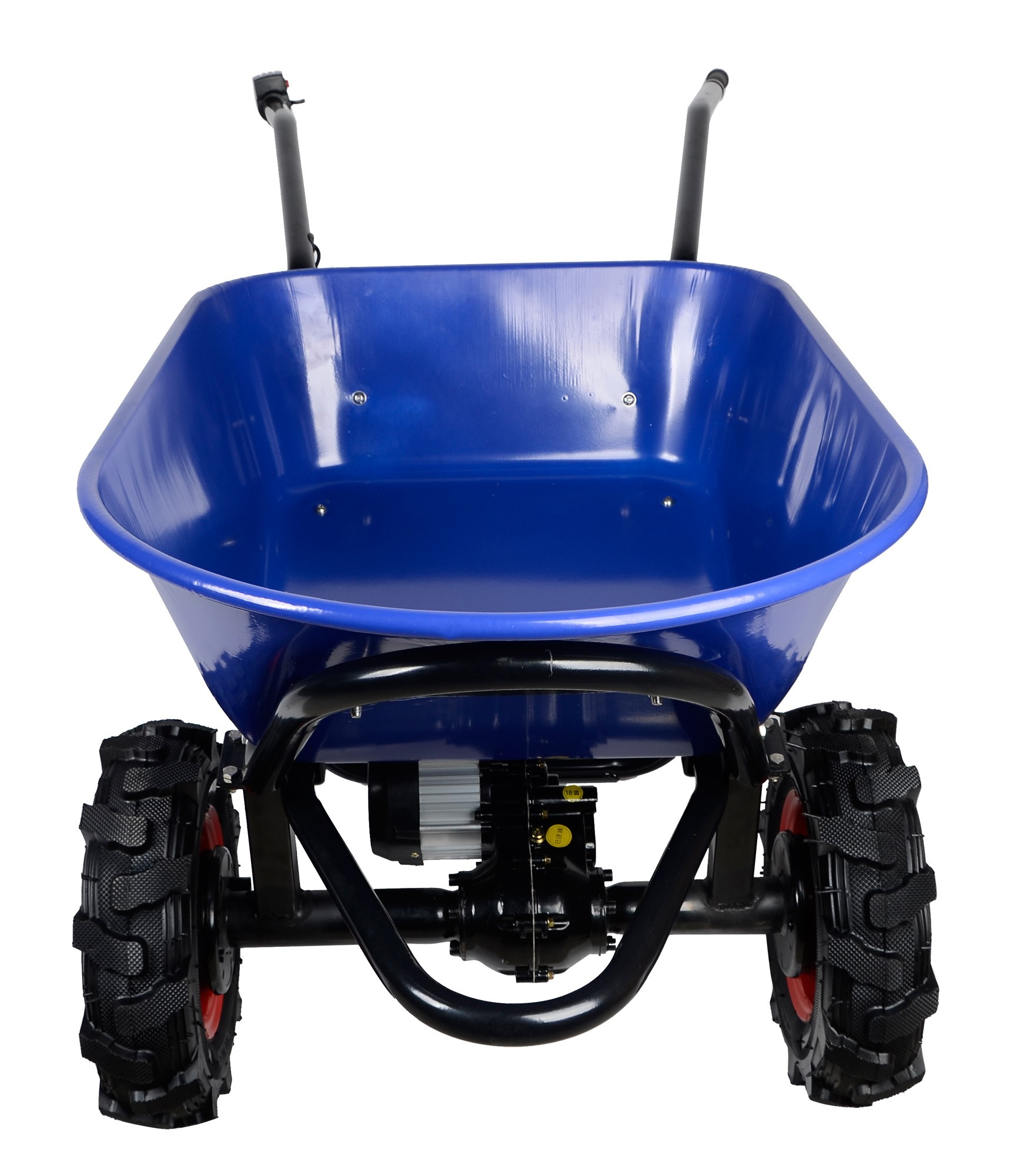 Przekręcając manetkę gazu w dół, aktywujesz płynne wspomaganie silnika. Naciśnięcie czerwonego przycisku na gazowym sterowniku przełącza silnik na bieg wsteczny, co jest przydatne podczas cofania lub hamowania podczas jazdy z górki.Odporna proszkowo malowana metalowa skrzynia mieści do 100 litrów i może przewieźć do 260 kg.