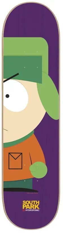 South Park firmy Hydroponic to potężna deskorolka, wykonana z 7-warstwowego twardego drewna klonowego i klonu kanadyjskiego oraz żywicy epoksydowej. Deska wykonana z twardego drewna klonowego „kopa” dobrze w triku i ma długą żywotność.