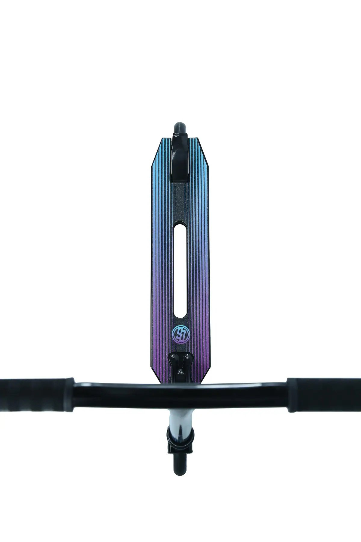 Řídítka vysoká 570 mm (22,5") a široká 510 mm (20,1") jsou vyrobena z vysokopevnostní oceli, takže jsou pevná a lehká. Palubní deska dlouhá 48 cm (19") a široká 12,2 cm (4,8") poskytuje dostatek prostoru pro vaše nohy, zatímco výřezy pro kolíky umožňují snadné přidání kolíků pro broušení. Pružná blatníková brzda poskytuje spolehlivou brzdnou sílu a částečně smontovaná konstrukce usnadňuje okamžité zahájení jízdy.