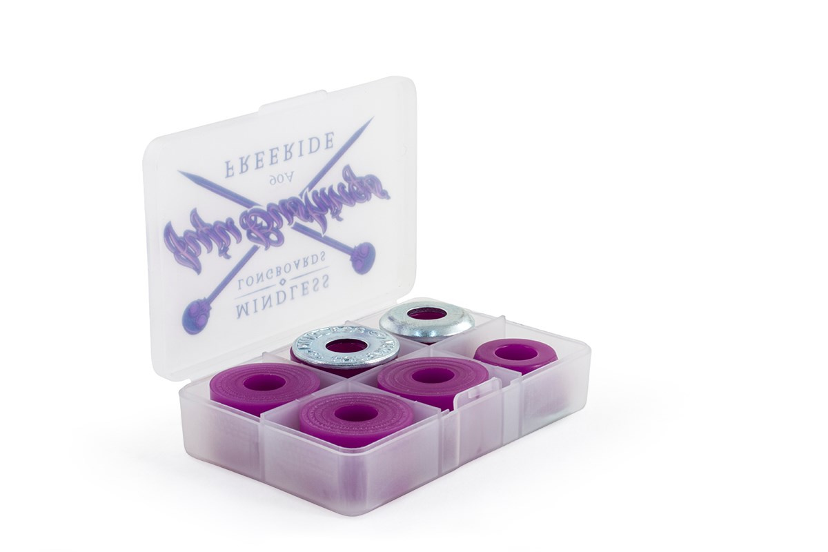 Czerwony: Downhill 99a, najtwardszyNiebieski: race 94a, twardyFioletowy: freeride 90a, średniZielony: carve 83a, miękki
