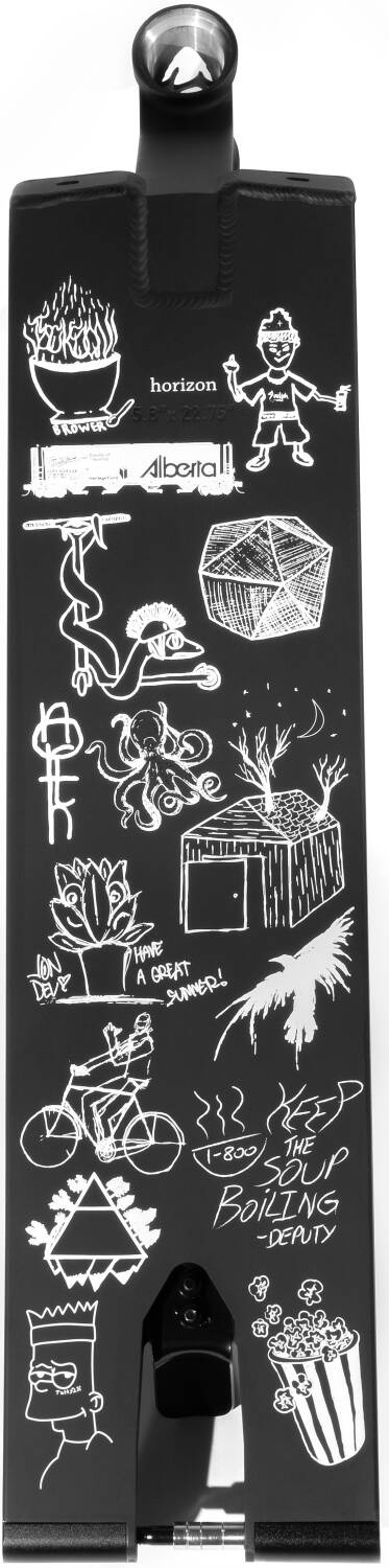 Co powiesz na doskonały rekord uliczny? Hulajnogi North wymyśliły świetny model Horizon. Niesamowita waga i co najważniejsze niesamowite wymiary ! Szyjka płycie jest jeden kawałek. To czyni go silniejszym . Deska nie posiada grindrails, co znacznie ułatwi jazdę na rurach.
