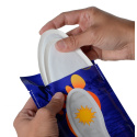 Otwórz zewnętrzne opakowanie i wyjmij wkładki na powietrze. Po rozgrzaniu włóż je bezpośrednio do butów. Temperatura tych wkładek przy pełnej aktywacji wynosi 39 - 40 °C. Ciepło można cieszyć się przez 8 godzin.