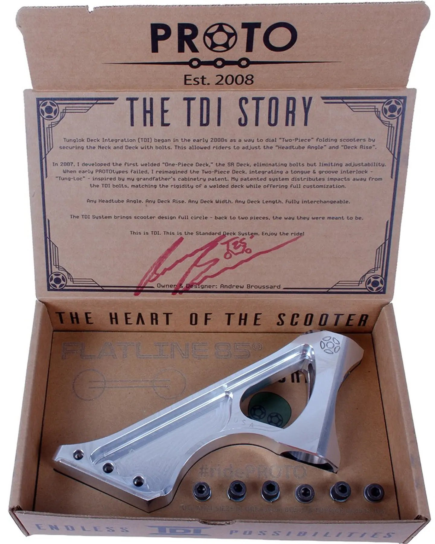 Precizně vyrobený krk koloběžky Proto Flatline Nex Pro je špičkovou volbou pro pokročilé a profesionální jezdce. Nabízí výjimečnou rovnováhu mezi výkonem a odolností. Elegantní design se vyznačuje zaoblenými předními rohy a integrovaným hlavovým složením, což zajišťuje hladkou jízdu. Každý model je pečlivě gravírován jedinečnými identifikátory a prochází přísnými kontrolami kvality, což je vyvrcholením amerického řemeslného umění v továrně PROTO v San Diegu.