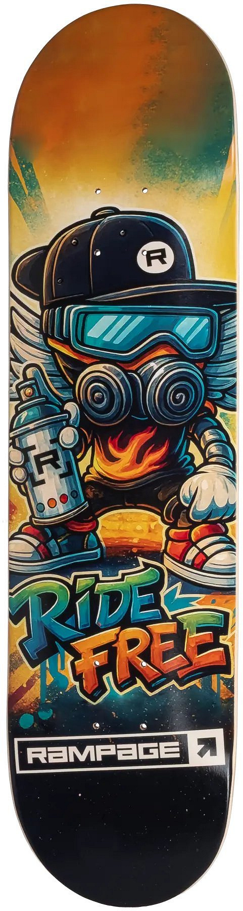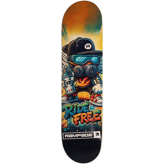 Vyzkoušejte skateboardovou desku Rampage Ride Free Grafitti, která je určena pro skateboardisty toužící po kombinaci stylu a odolnosti. Tato 32palcová deska, vyrobená z prvotřídního severoamerického javoru v robustní sedmivrstvé konstrukci, nabízí vyvážený rozvor 14 palců, který je ideální pro plynulé přechody. Její středně konkávní tvar a dvojitý kicktail přispívají k vynikající ovladatelnosti a umožňují vám bez omezení předvádět své triky.