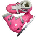 Regulowane rozmiarowo dziecięce łyżwy od Roces. Mają wyjmowaną termoizolacyjną wkładkę i regulowany rozmiarowo szkielet. Łyżwy figurowe są łatwo regulowane i chronią stopę przed zimnem. Mikro regulowana pamięciowa klamra ułatwia zakładanie i dopasowanie. Wyposażone w ostrza z ząbkowanej stali węglowej.